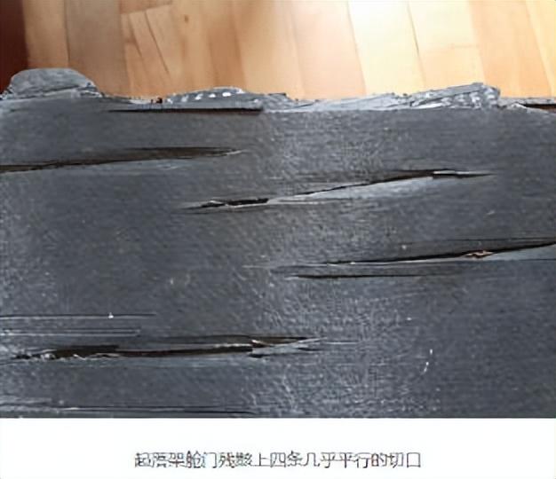 据专业调查人员透露——这块起落架舱门残骸,从内侧到外侧,有四个几乎平行、极其有力的穿透切口。