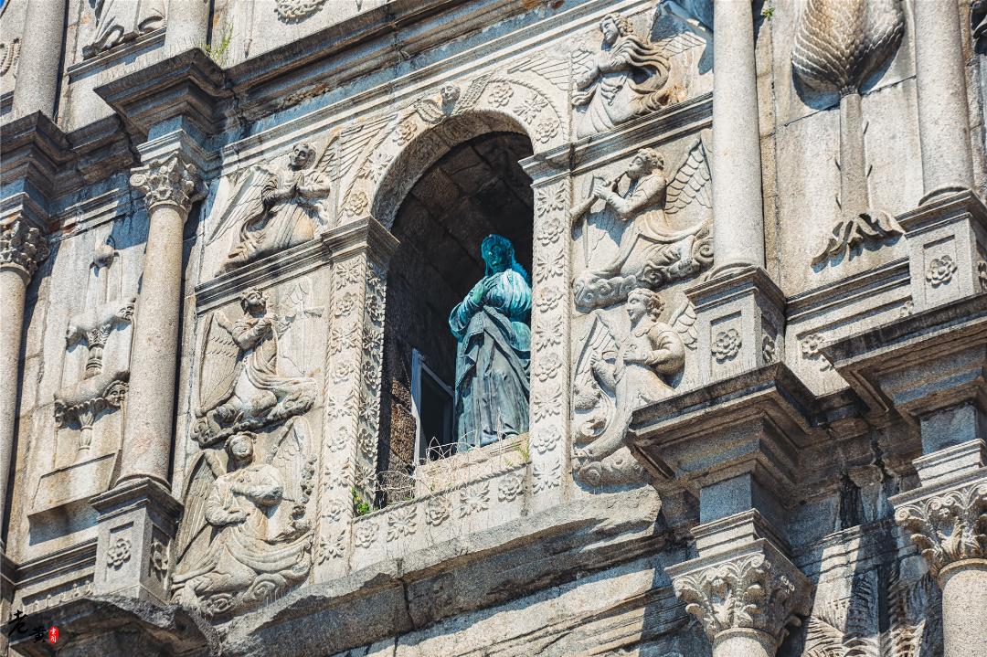 第四站继续坐车,目的地是大三巴牌坊。没错,这才是澳门logo中的logo。只要是澳门宣传,不管是视频,图片或者其他,大三巴是绝对的形象代言。大三巴别名圣宝禄大教堂遗址,在道光年间,教堂被大火焚毁,只留下大三巴牌坊,颇有圆明园那几根残柱的意思。这里拍照人数较多,谨慎选择机位,记得礼让优先。