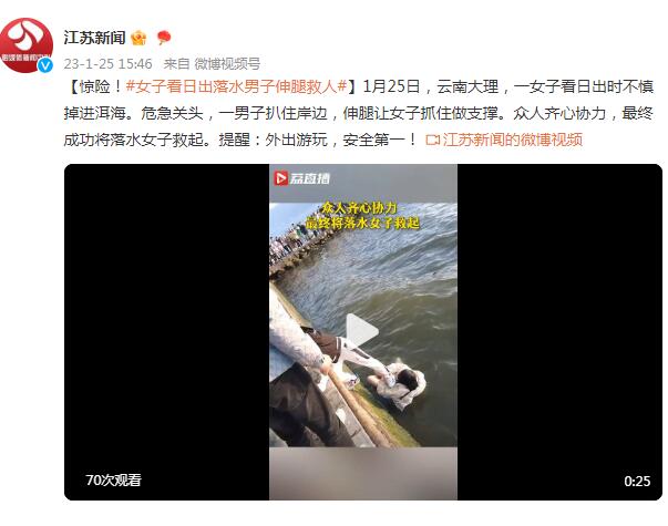 女子掉进洱海 男子以腿为梯救人(男子舍身救人)