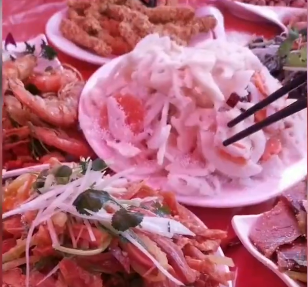 众人户外吃席8个凉菜被冻成“硬菜”(桌上的菜已经凉了)