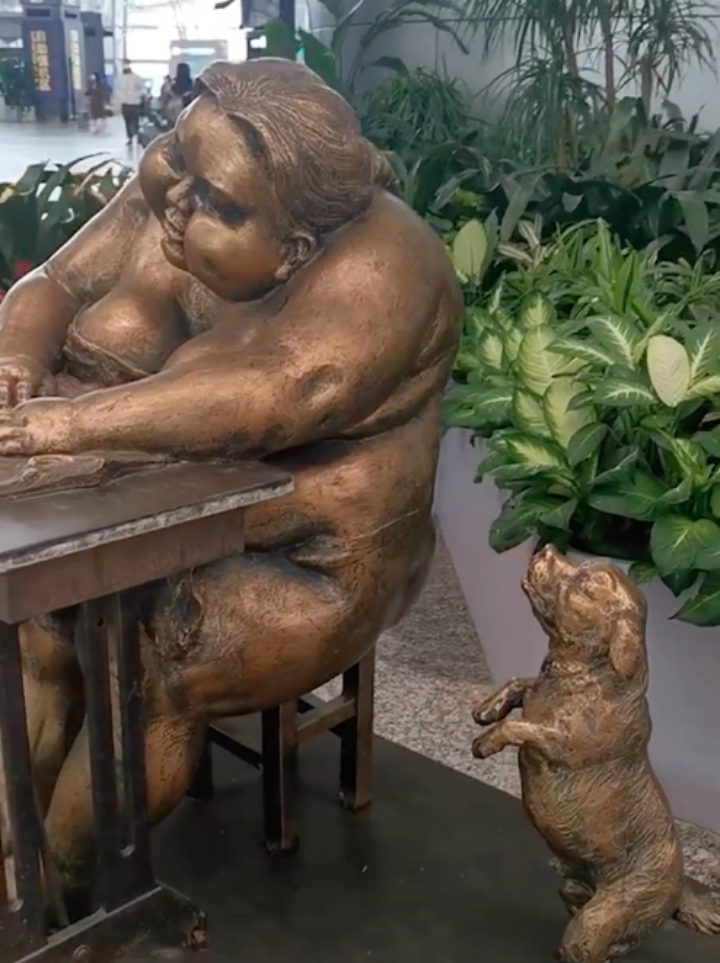 机场回应大厅雕塑被指有损女性形象(广州机场摆放肥胖女人雕塑)